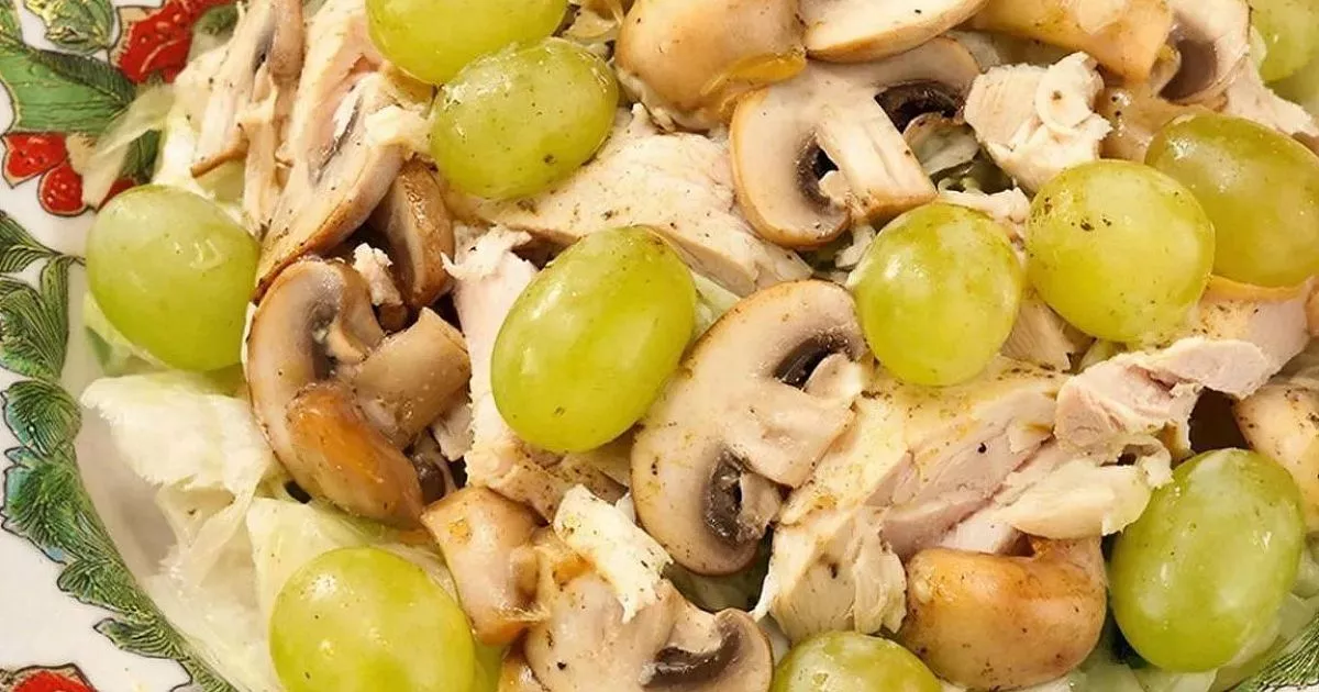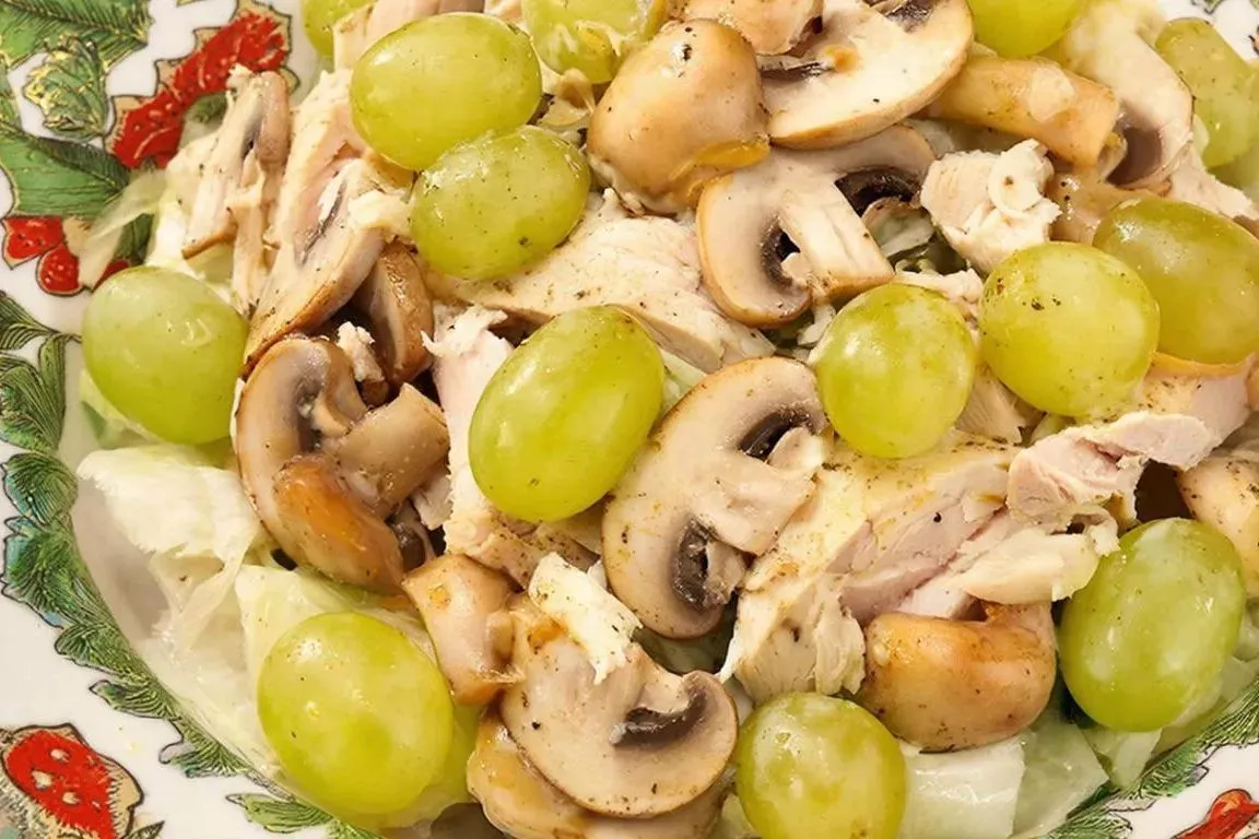 Подавайте салат сразу после приготовления, чтобы сохранилась игра текстур: хруст яблока, сельдерея и орехов, нежность курицы, сочность винограда. Это блюдо идеально для новогоднего стола или торжественного ужина, а времени очень мало.