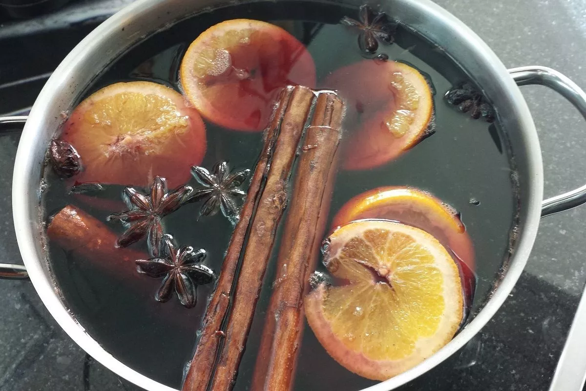 Пошаговый рецепт глинтвейна в домашних условиях: нагрейте вино в кастрюле с толстым дном на среднем огне до 70-75°C (не кипятите!). Добавьте мед и размешайте до полного растворения. Положите фрукты и специи, прогрейте 5-7 минут на минимальном огне. Снимите с плиты, накройте крышкой и дайте настояться десять минут. Процедите напиток через сито и разлейте по бокалам.