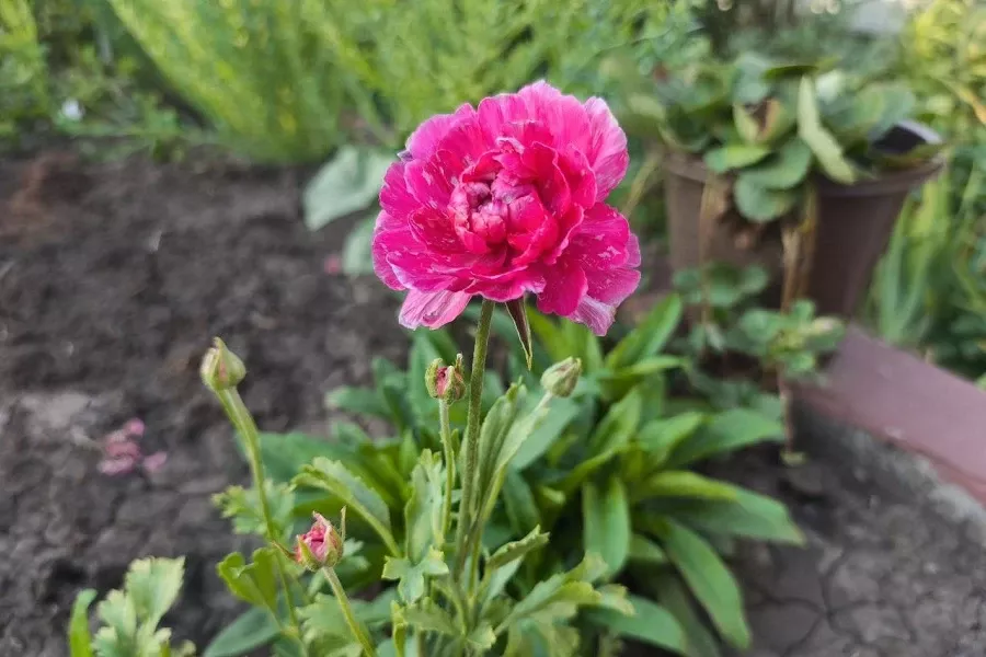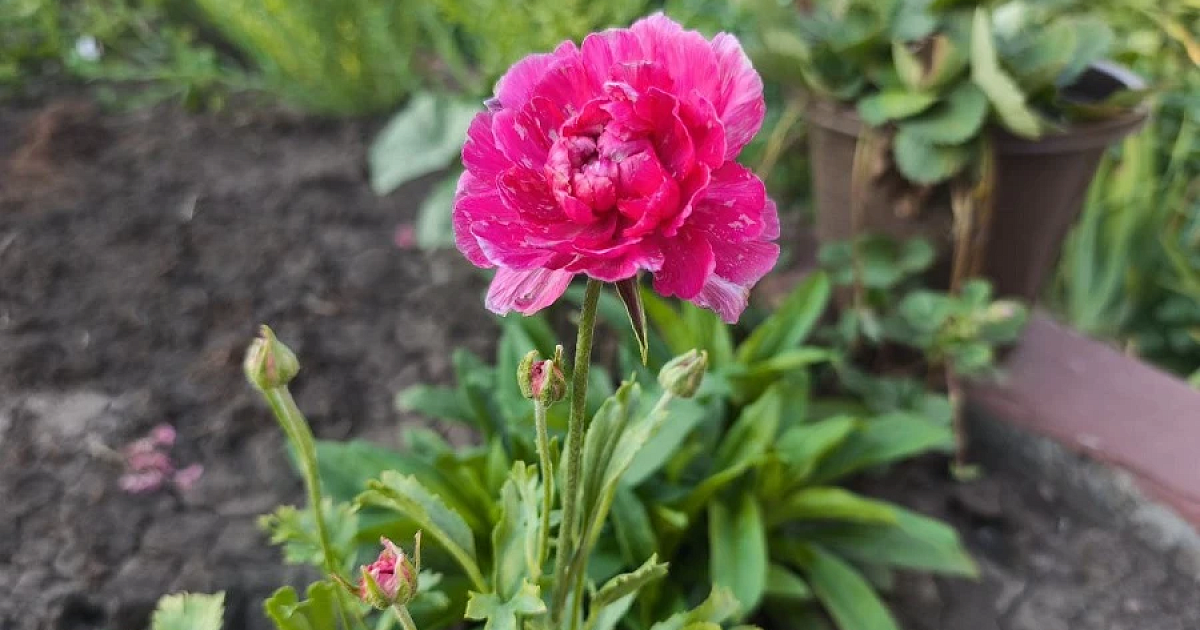 Пока ранункулюс цветет, важно уделять ему внимание: периодически удалять увядшие цветы и аккуратно пропалывать землю вокруг куста, если сажаете на улице.
