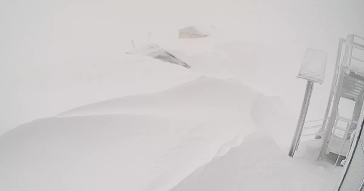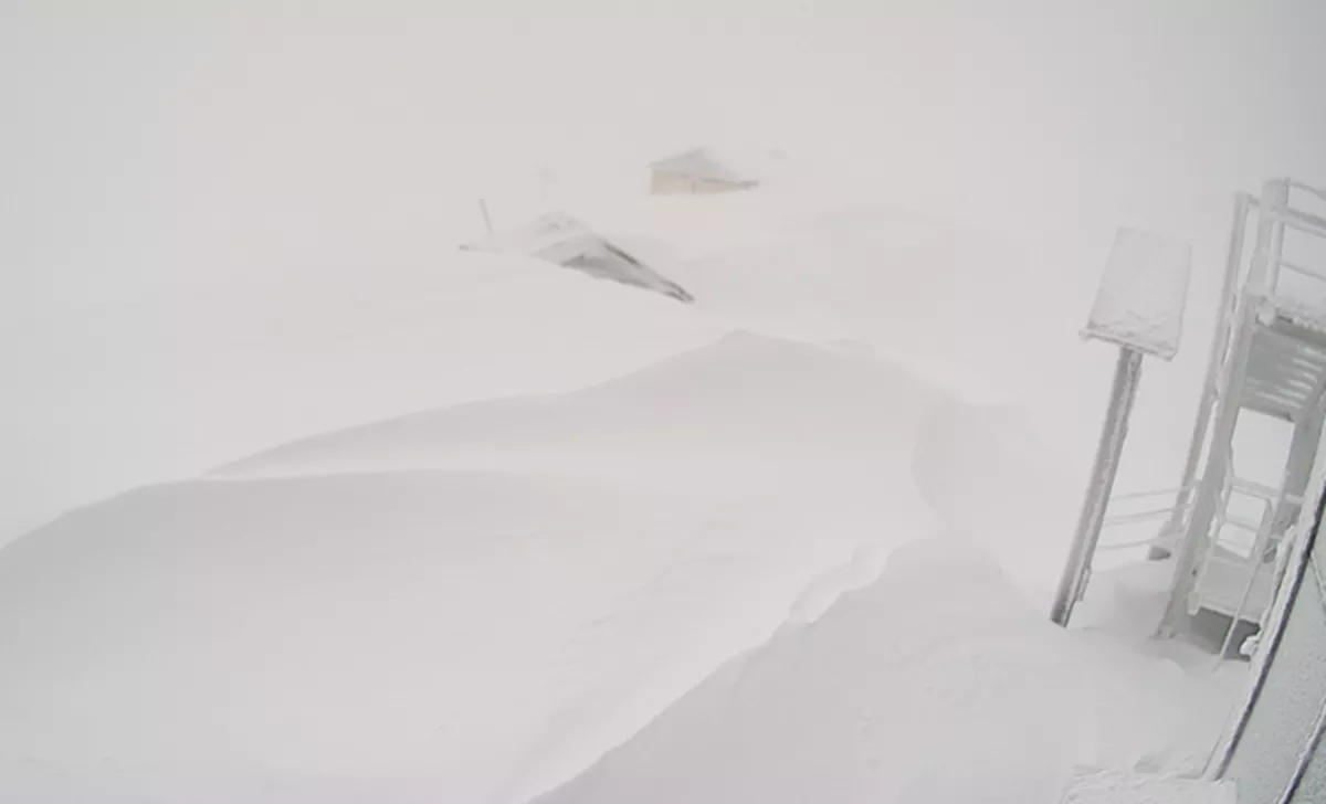 На отметке в 1600 метров сугробы тоже прибавили. Высота белого покрова составляет 180 сантиметров. Видимость – до 100 метров. Идет снег.