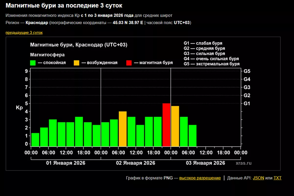 Магнитная буря уровня G1 ударила по Земле в ночь на 3 января.