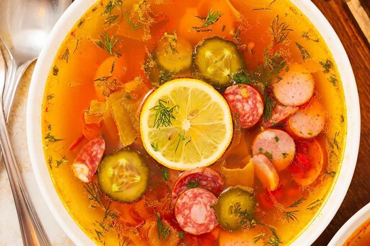 Солянка — это не просто суп, а полноценное блюдо, в котором сочетаются соленое, кислое и мясное. Этот густой русский суп обычно подают как самостоятельное блюдо, добавляя ломтик лимона и сметану.
