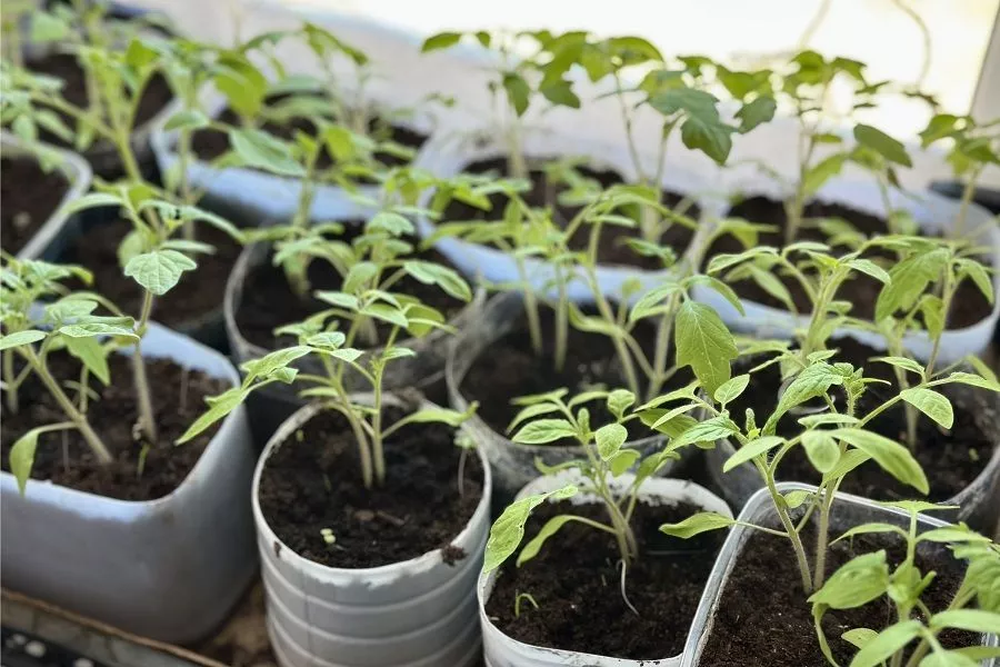 Йодно-молочное опрыскивание для быстрого роста рассады в фазе 3–4 настоящих листьев.