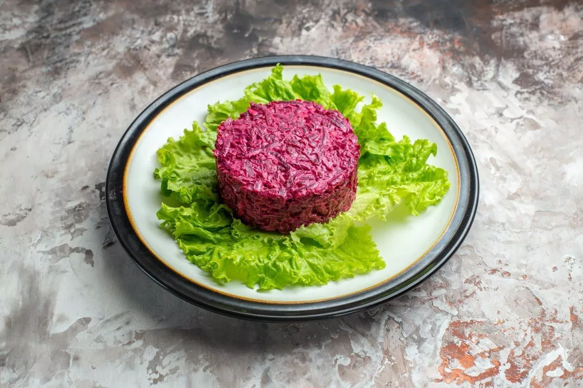 После праздничных перееданий наладить работу ЖКТ можно, например, с помощью простого, но очень вкусного салата со свеклой, чесноком и сухофруктами.