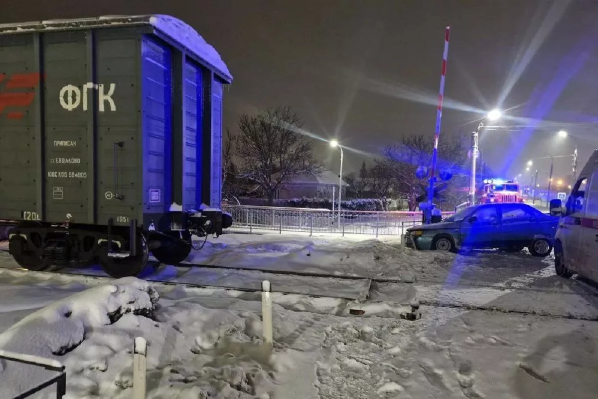 Сегодня в 02.20 на железнодорожном переезде, на перегоне между станциями Тульская и Майкоп, водитель легкового автомобиля выехал на пути перед приближающимся грузовым поездом.