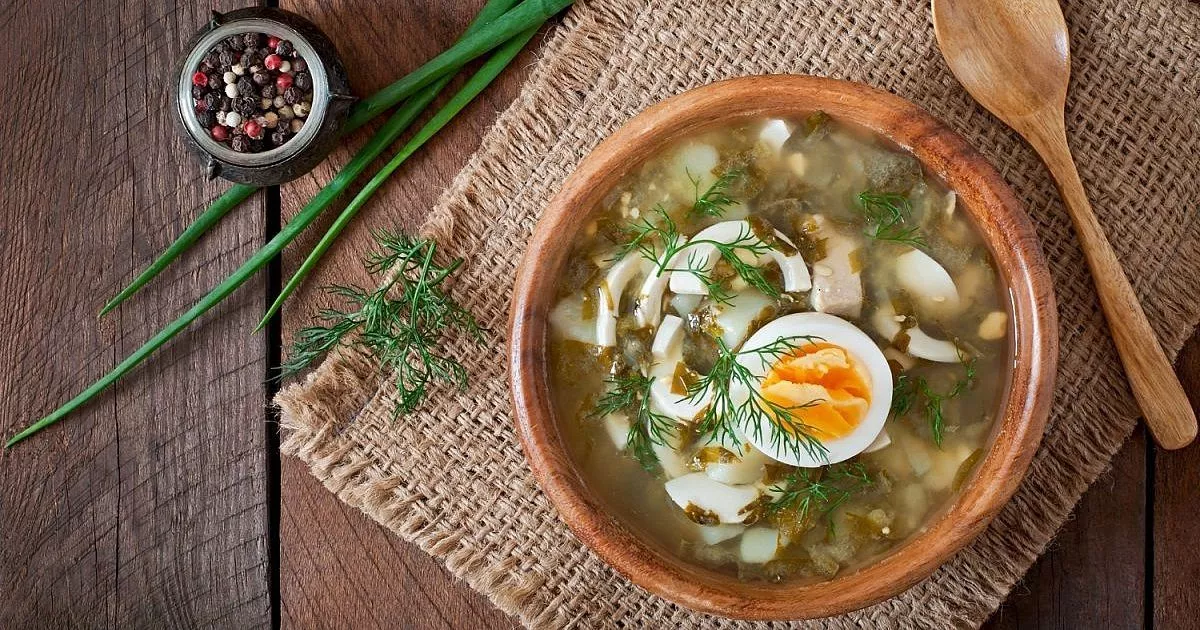 Чем холоднее на улице, тем сытнее и гуще должен быть суп - только так можно быстро согреться по возвращении домой с улицы. Например, можно сварить зеленый борщ с щавелем. Но чтобы не тратить на это полдня, рекомендуем заранее заморозить в морозилке мясной бульон (можно с кусочками мяса), овощную заправку и щавель.