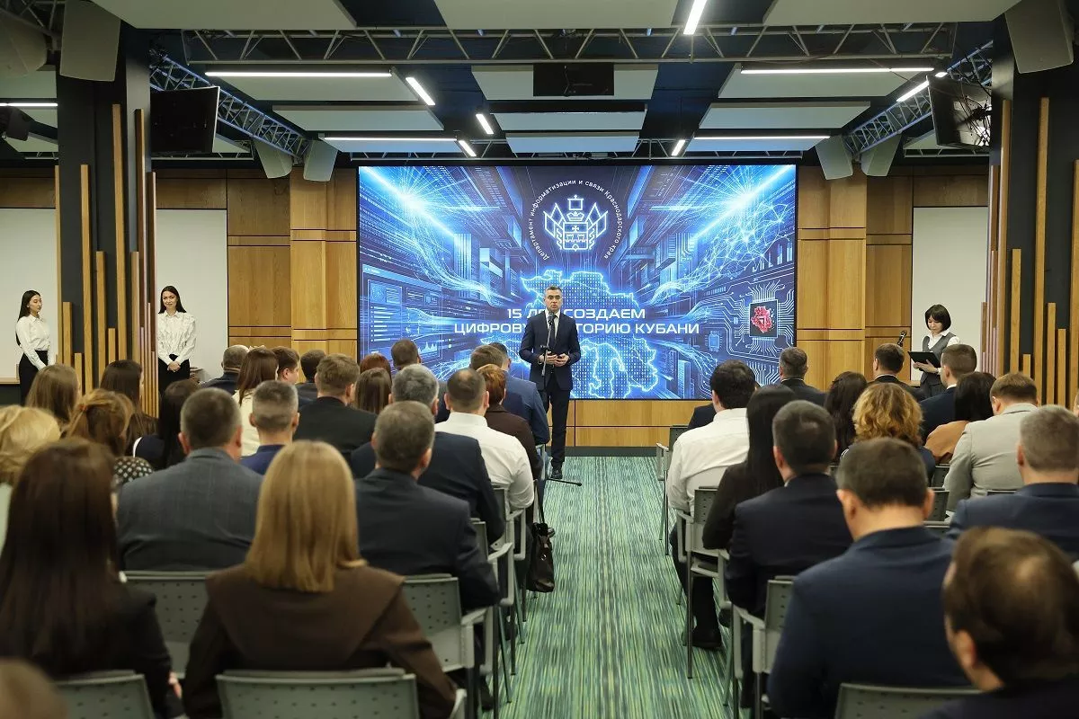 Замглавы региона поздравил коллектив департамента от лица губернатора Краснодарского края и отметил неоценимый вклад ведомства в цифровизацию региона.