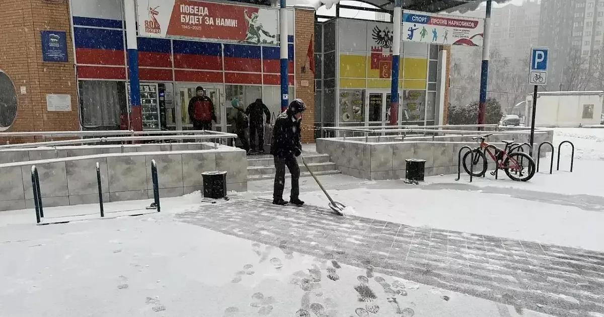 Специалисты чистили тротуары и подходы к зданиям. После пешеходные дорожки обрабатывали песко-соляной смесью для предотвращения образования наледи, сообщили в пресс-службе городской администрации.