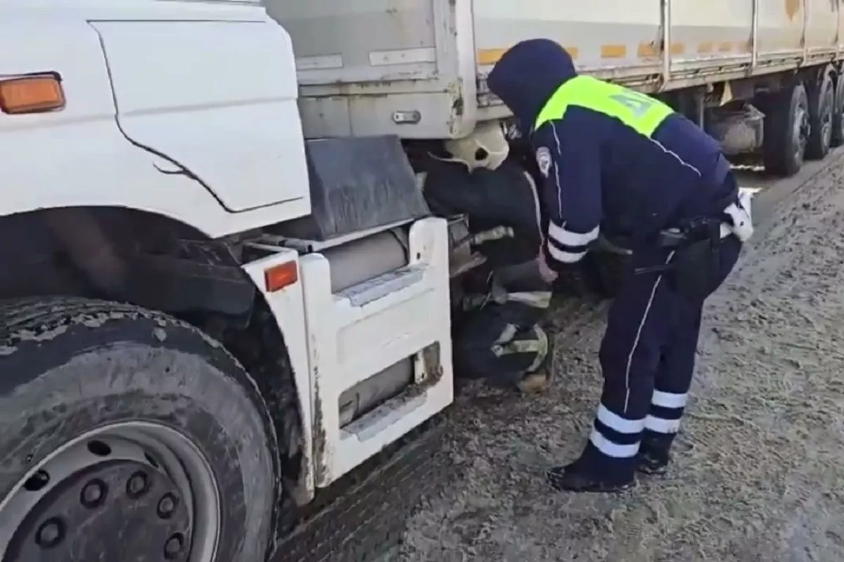 Сотрудники Госавтоинспекции Новороссийска в сложных погодных условиях оказали помощь водителю грузовика.