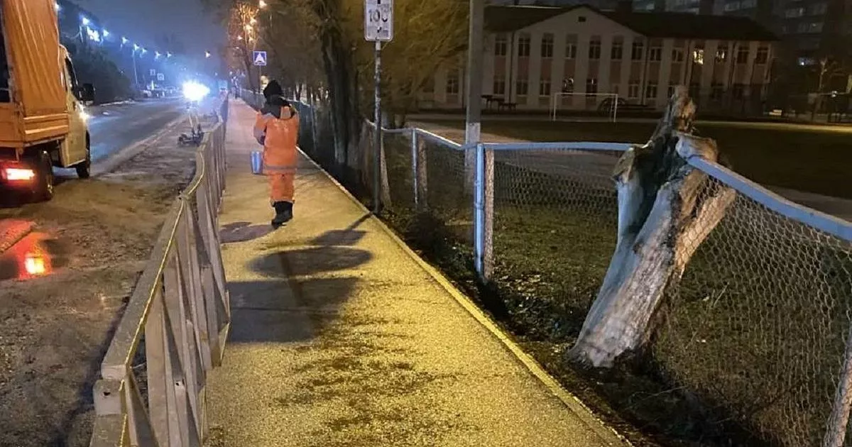 Для обработки тротуаров, остановочных комплексов, подземных и надземных пешеходных переходов, а также внутриквартальных территорий и подходов к социально значимым объектам с раннего утра работают около 700 человек и спецтехника.