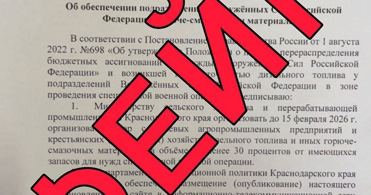 Поддельное «распоряжение» губернатора Краснодарского края и «приказ» и.о. главы регионального минсельхоза рассылают администраторам телеграм-каналов и редакциям СМИ. В тексте говорится о том, что якобы аграрии Кубани должны передать треть имеющегося дизтоплива и иных горюче-смазочных материалов на нужды ВС РФ. Это фейк.