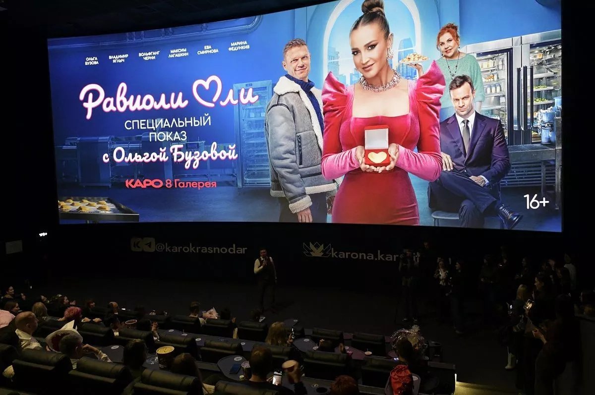 Спецпоказ комедии «Равиоли Оли» в кинотеатре «Каро 8 Галерея» лично представила певица, телеведущая, актриса театра и кино, дизайнер. Ольга Бузова впервые снялась в главной роли российского полнометражного фильма. Премьера комедии состоялась 5 февраля.