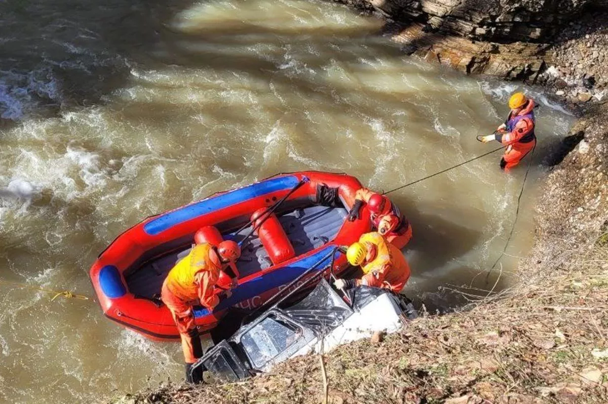 Внедорожник с пассажирами съехал с возышенности в горную реку Сахрай в Майкопском районе Адыгеи. Два человека погибли. Трагедия произошла 15 февраля в поселке Усть-Сахрай.