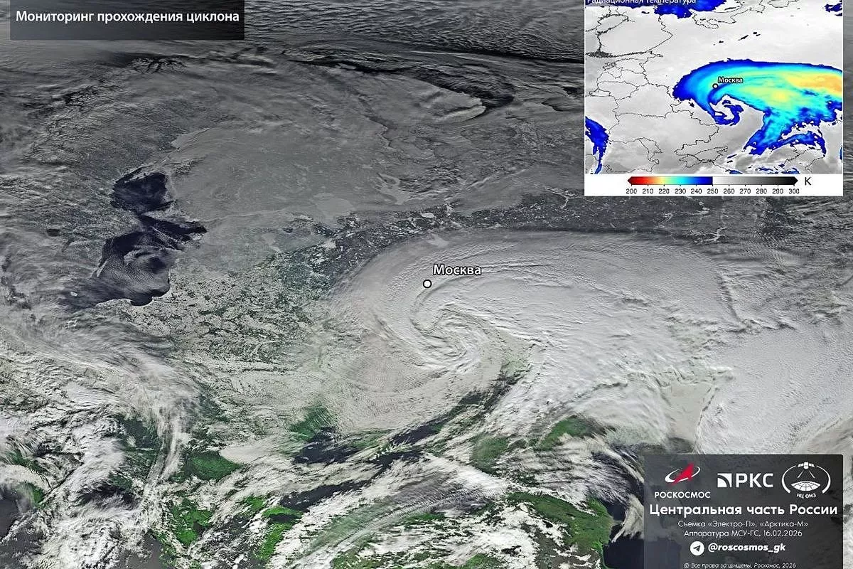 «Роскосмос» опубликовал спутниковый снимок снежного циклона, который 16 февраля испортил погоду в Москве и центральных регионах. Краснодарский край сейчас находится в теплом секторе этого ненастного вихря - дожди возможны, но не экстремальные.