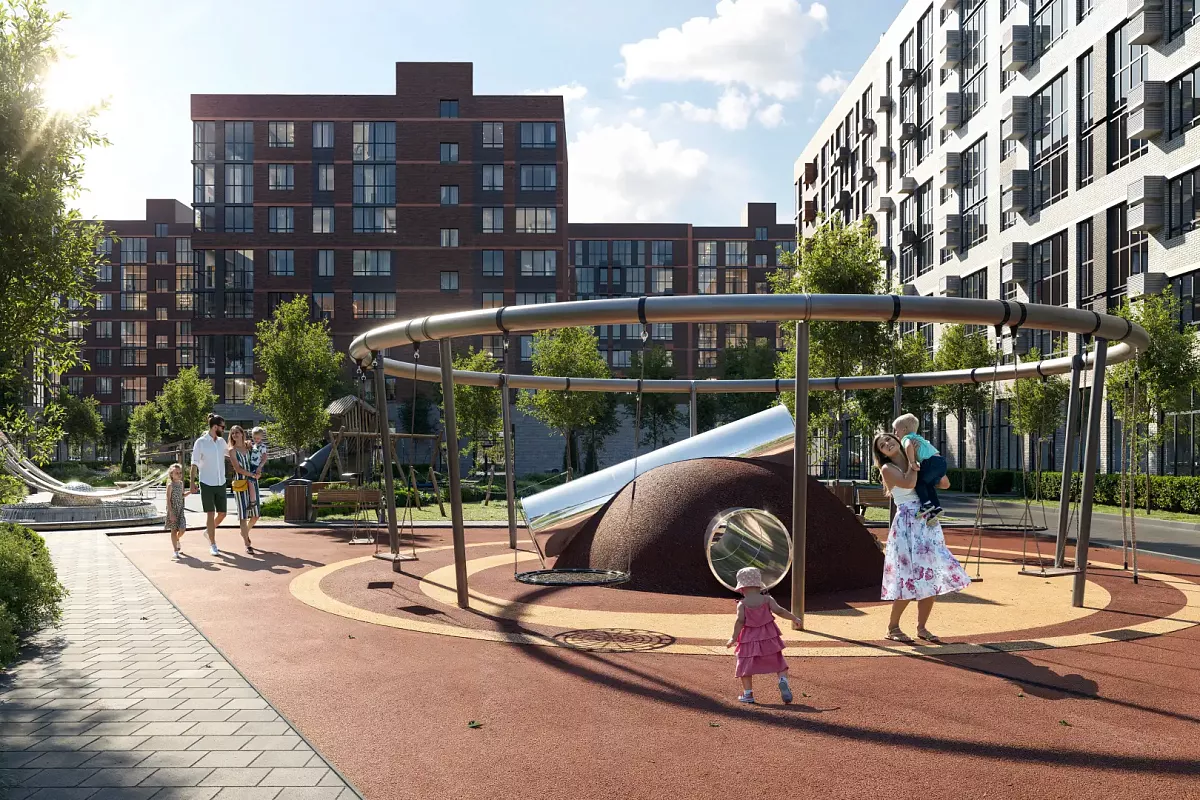Территория будет благоустроена: появятся зеленые зоны, цветочные клумбы и площадки для отдыха всех возрастов. Спортивную составляющую дополнят специальные зоны во дворах, беговые и велодорожки, а также современные детские игровые комплексы.