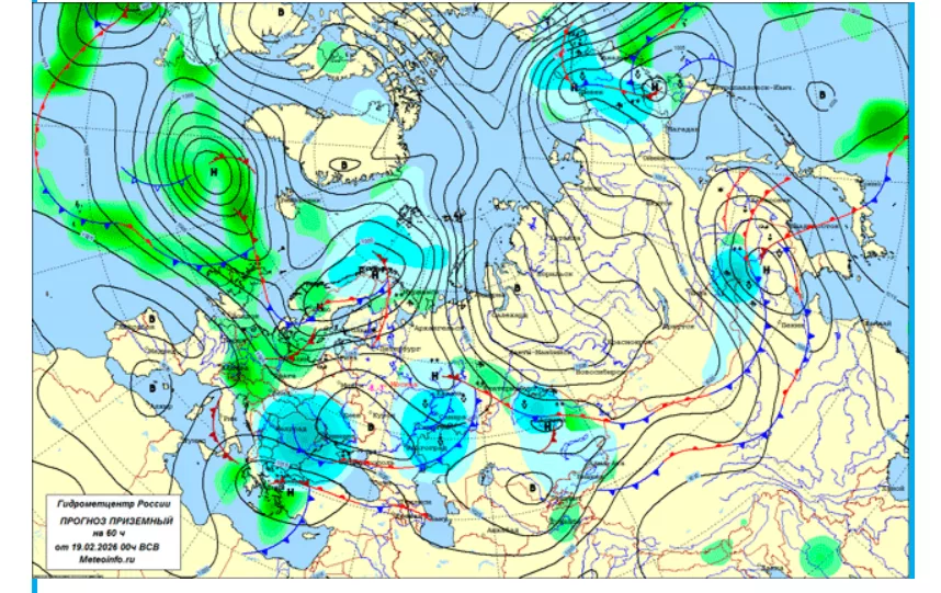 20 февраля. В Вологодской, Архангельской, Костромской, Ивановской, Владимирской областях, а также ночью в Москве, Московской, Тверской, Рязанской и Тамбовской областях ожидается сильный снег. В Ярославской области ночью прогнозируется очень сильный снег. В Приволжском федеральном округе — сильный снег, метель, на юге — гололёд, ветер 18–23 м/с (в Башкортостане до 26 м/с, в Оренбургской области до 27 м/с). В Луганской Народной Республике — осадки в виде снега, мокрого снега и дождя, сильные гололёдно-изморозевые отложения, налипание мокрого снега. В Астраханской области — мокрый снег и снег, налипание мокрого снега, ветер 15–20 м/с. В Калмыкии — дождь, мокрый снег и снег, ночью ветер до 23 м/с. В Краснодарском крае — дождь, мокрый снег и снег, в районе Новороссийска ночью ветер 23–28 м/с. В Ставропольском крае и Ингушетии — ветер до 23 м/с. В Кабардино-Балкарии — дождь и мокрый снег, ветер 30–33 м/с. В Челябинской и Иркутской областях, Республике Алтай — сильный снег, метель, гололёдные явления, в горах ветер до 25 м/с, в Иркутской области — до 20–25 м/с. На побережье Магаданской области и Курильских островах — сильный снег, ветер 20–25 м/с.