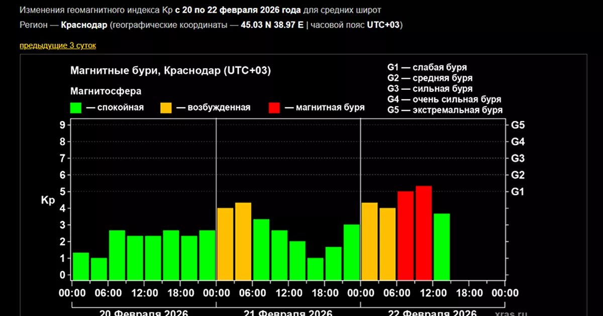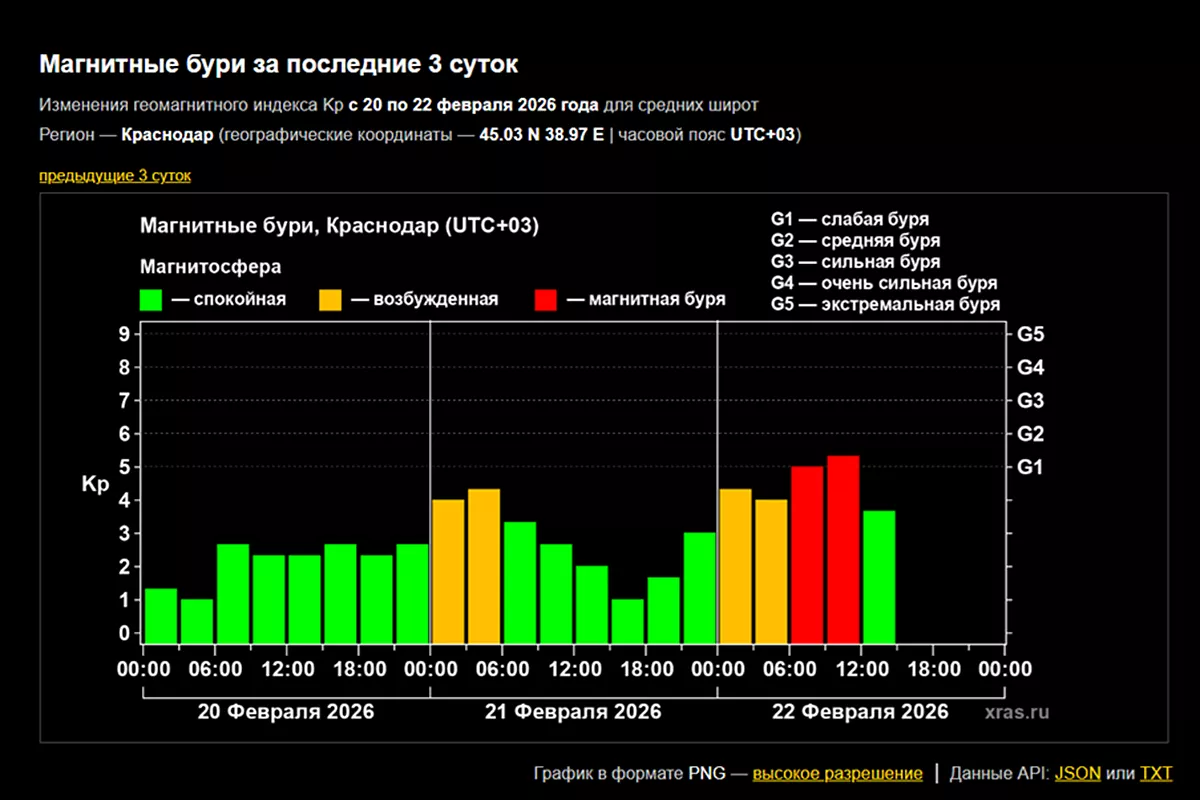 Магнитная буря уровня G1 внезапно ударила по Земле 22 февраля. Возмущения начались еще минувшей ночью, а к утру они достигли «красной зоны». Так магнитосфера нашей планеты отреагировала на рост скорости солнечного ветра. Это следует из графика, опубликованного на сайте Лаборатории солнечной астрономии ИКИ и ИСЗФ РАН.