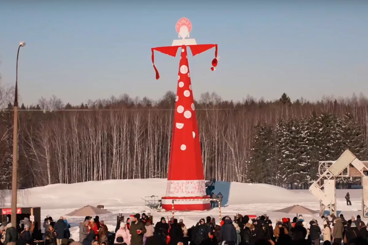 Масленица в «Горках Ленинских» проводится с 2016 года, и каждый раз организаторы совершенствуют главный символ праздника. В 2026 году чучело стало не только самым высоким, но и получило уникальное убранство: впервые его «нарядили» в кружевной кокошник размером 3×2,5 метра и платье с узорами, созданными по мотивам традиционной вышивки шёлком.