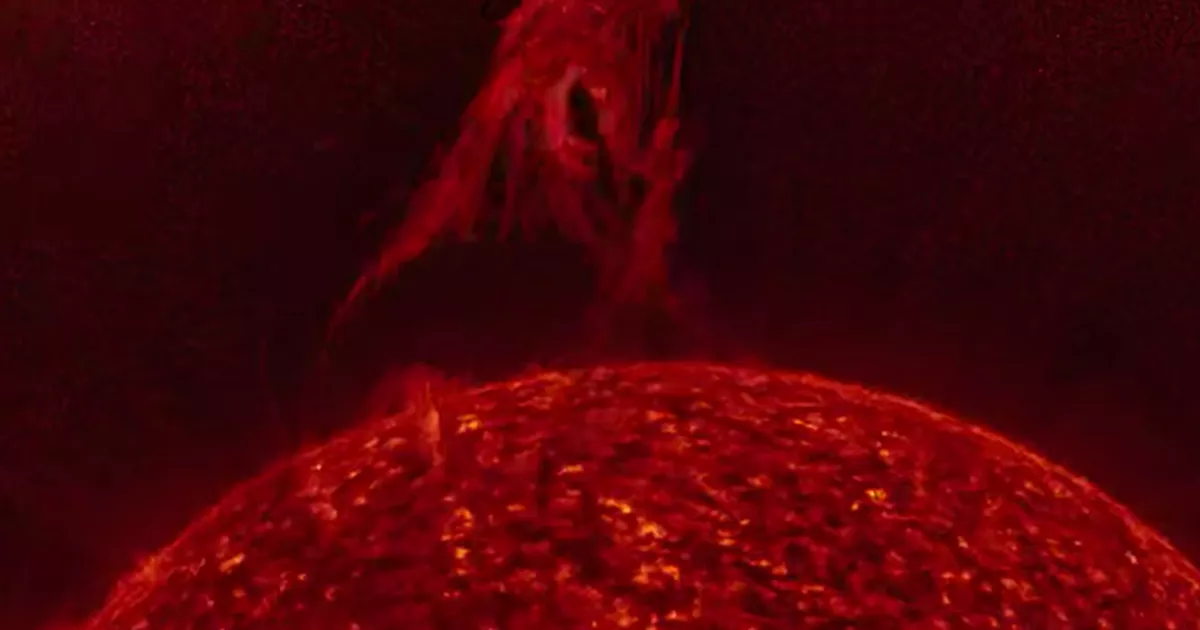 - На Солнце зарегистрирован отрыв гигантского протуберанца, выброшенного в направлении северного полюса звезды. Измеренные размеры плазменной структуры вблизи Солнца составили около миллиона километров. Это в три раза больше, чем расстояние от Земли до Луны, - говорится в сообщении ученых.