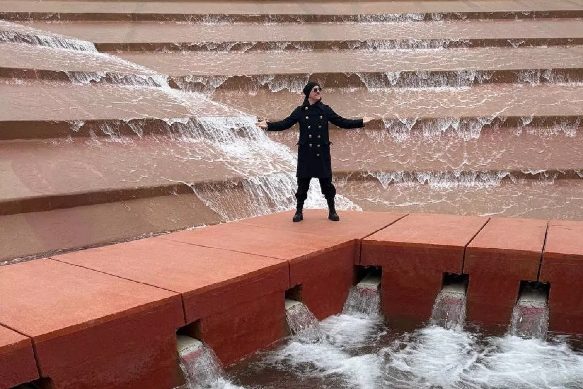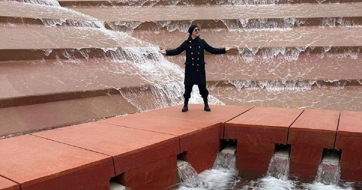На кадрах можно увидеть «Амфитеатр воды» или «Каньон», который запустили здесь осенью, арт-объект «Объятия человечества».