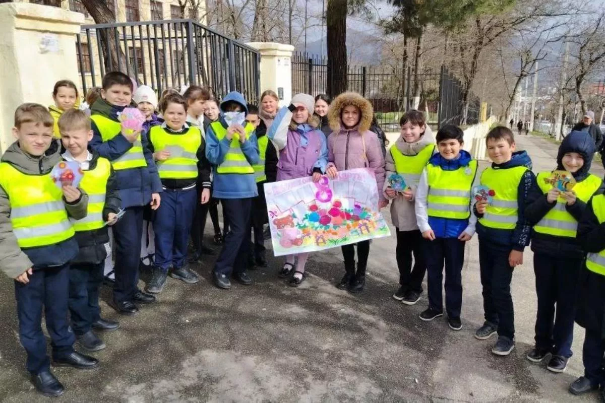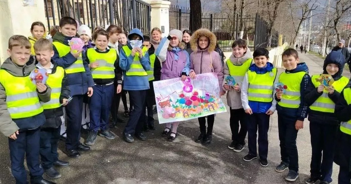 Ученики школы №21 порадовали праздничным настроением всех представительниц прекрасного пола на дорогах!