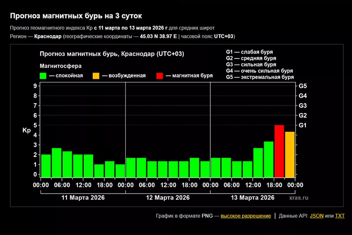 В классификации магнитных бурь пять уровней - от G1 до G5. Считается, что сильные бури вызывают нарушения коротковолновой связи и работы навигационных систем, а также сбои напряжения в промышленных сетях.