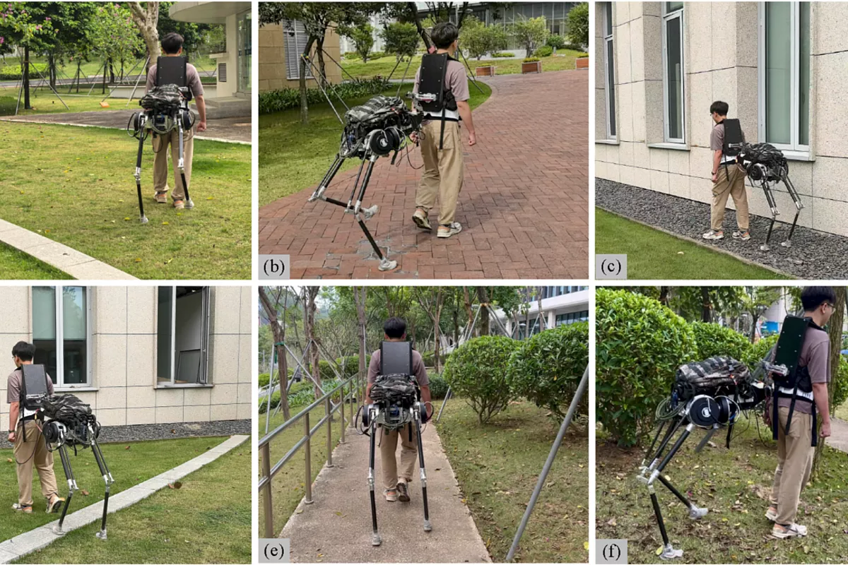 В демонстрационных видеороликах разработчик прогуливается по кампусу, а за ним шагает роботизированный «круп». На ровной поверхности механические ноги заметно отстают от живого шага, но на лестнице конструкция раскрывает свои преимущества перед колесными аналогами. Робот уверенно преодолевает ступени, сохраняя равновесие и синхронизируясь с человеком.