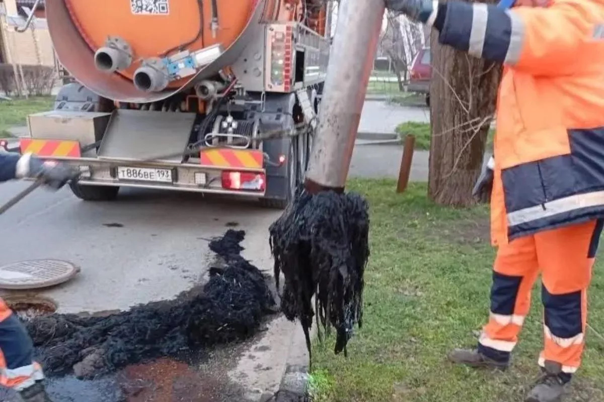 Специалисты «Росводоканал Краснодар» в ходе плановой промывки обнаружили крупные засоры на главном коллекторе на пересечении улиц Калинина и Передерия.