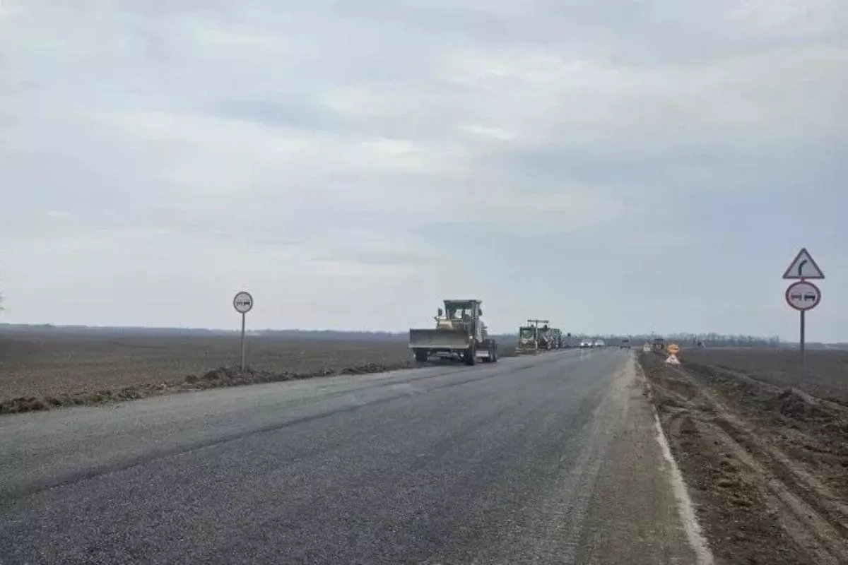Работы ведут на отрезке протяженностью 7,1 км между станицами Тбилисской и Казанской.
