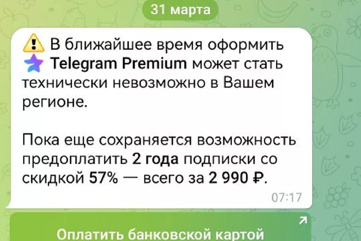 Утром 31 марта россияне получили уведомления о последней возможности приобрести Premium-подписку в мессенджере.