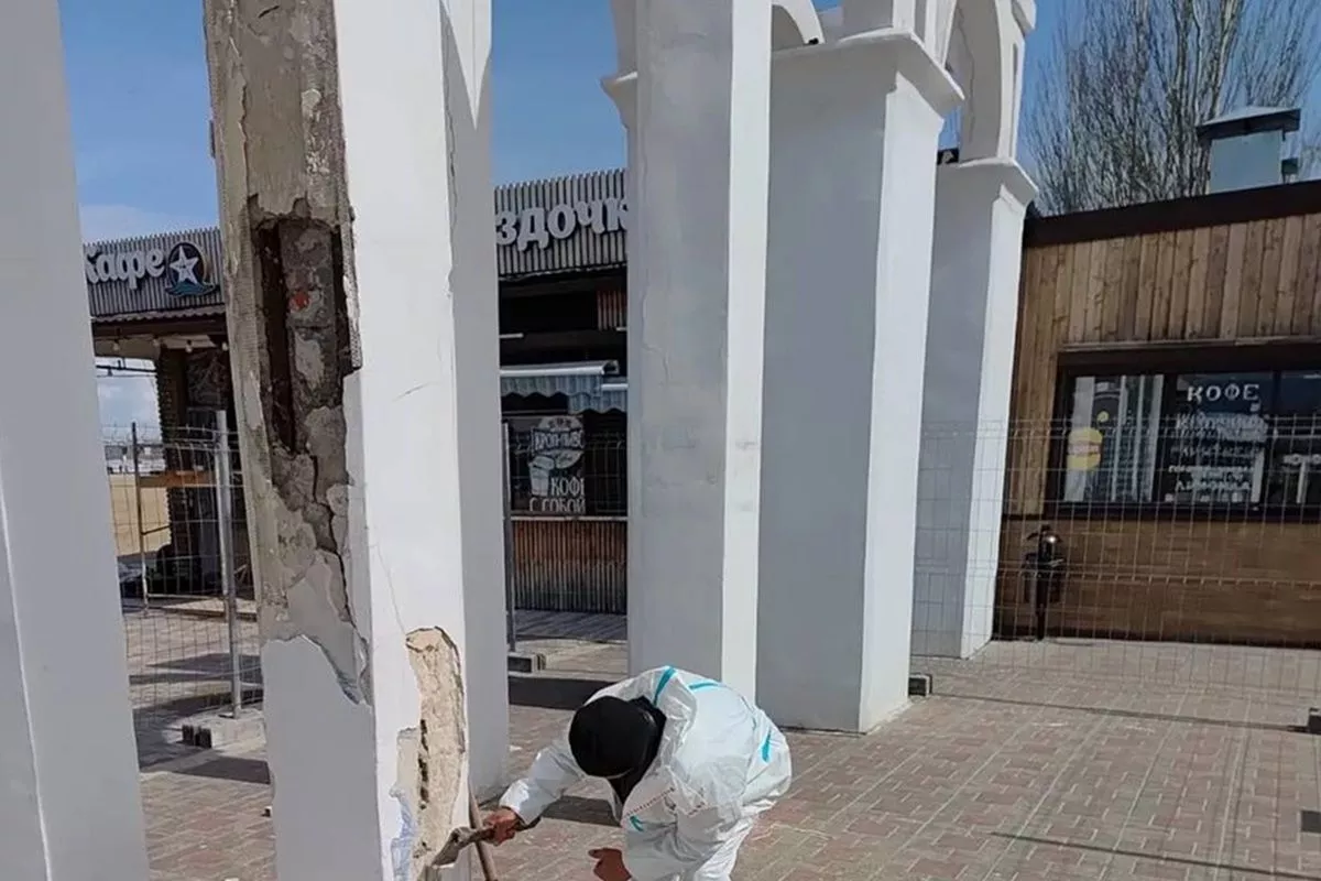 Арка, которая является одной из узнаваемых архитектурных деталей курорта, за зиму местами разрушилась.