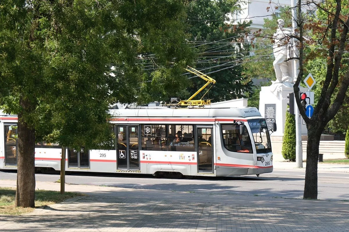 Трамвай №8 - у Свято-Покровского храма (ТРК «Меридиан»), у Свято-Екатерининского кафедрального собора (остановка «Кооперативный рынок») и у храма святого великомученника Георгия Победоносца (остановка «Улица Северная»).