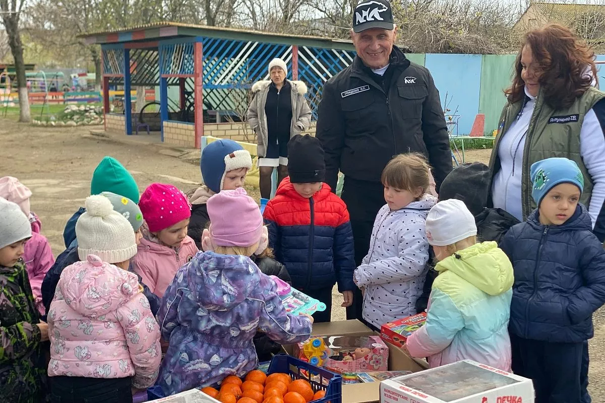 Волонтерская группа «Единой России» из Краснодарского края посетила также детский сад города Геническа «Сказка», где 116 воспитанников. Туда привезли сладкие сувениры и подарки для детей – книги, раскраски, канцтовары и игрушки. Помощь в формировании подарков оказала член президиума регионального политсовета, руководитель регионального совета первичек Людмила Скальская.