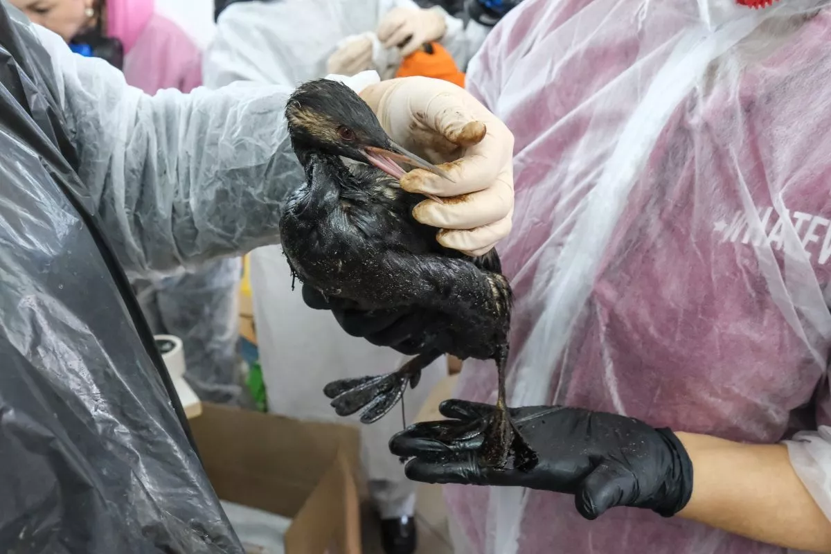 За двое суток на побережье курорта обнаружили более 200 птиц, погибших и измазанных в нефтепродуктах.
