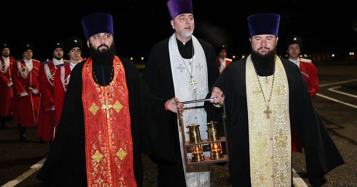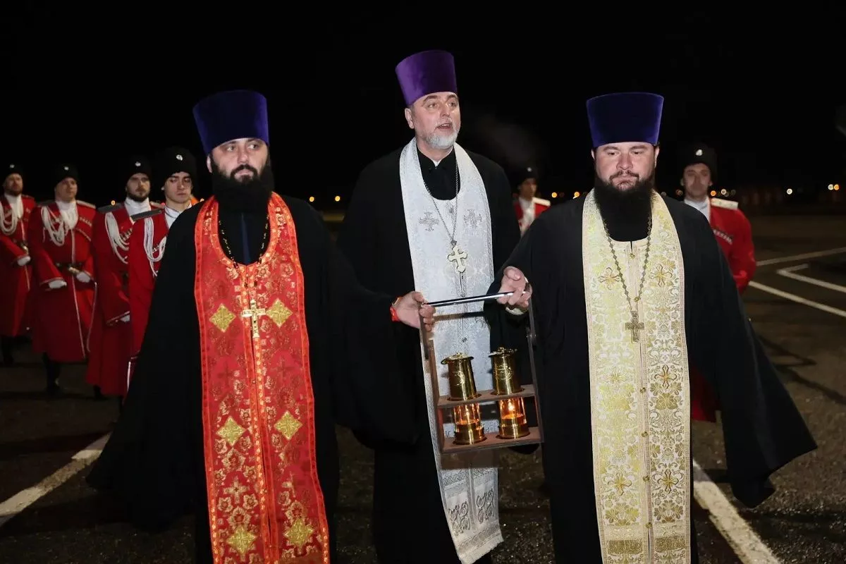 В аэропорт Краснодара святыню привезли спецрейсом из Иерусалима.