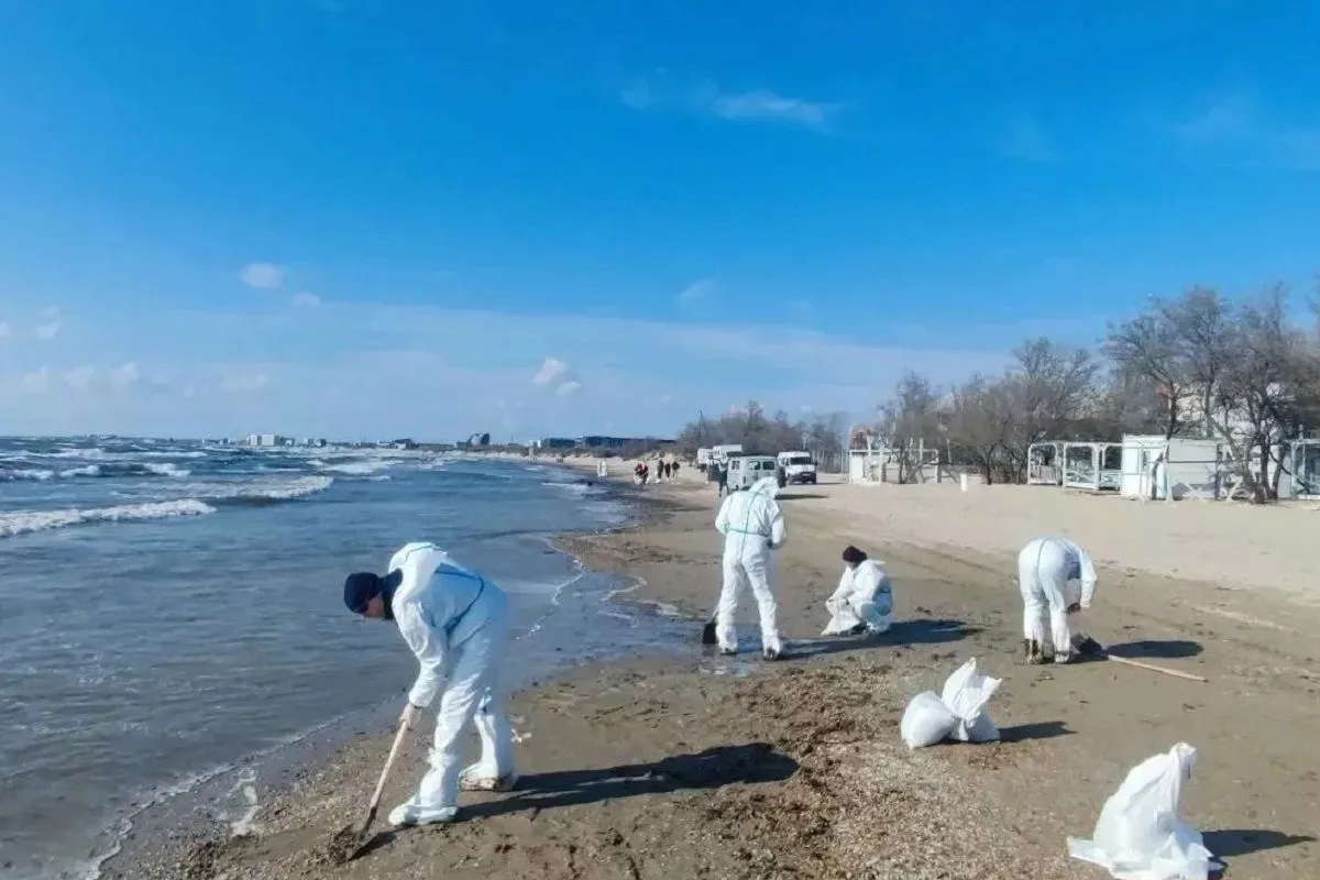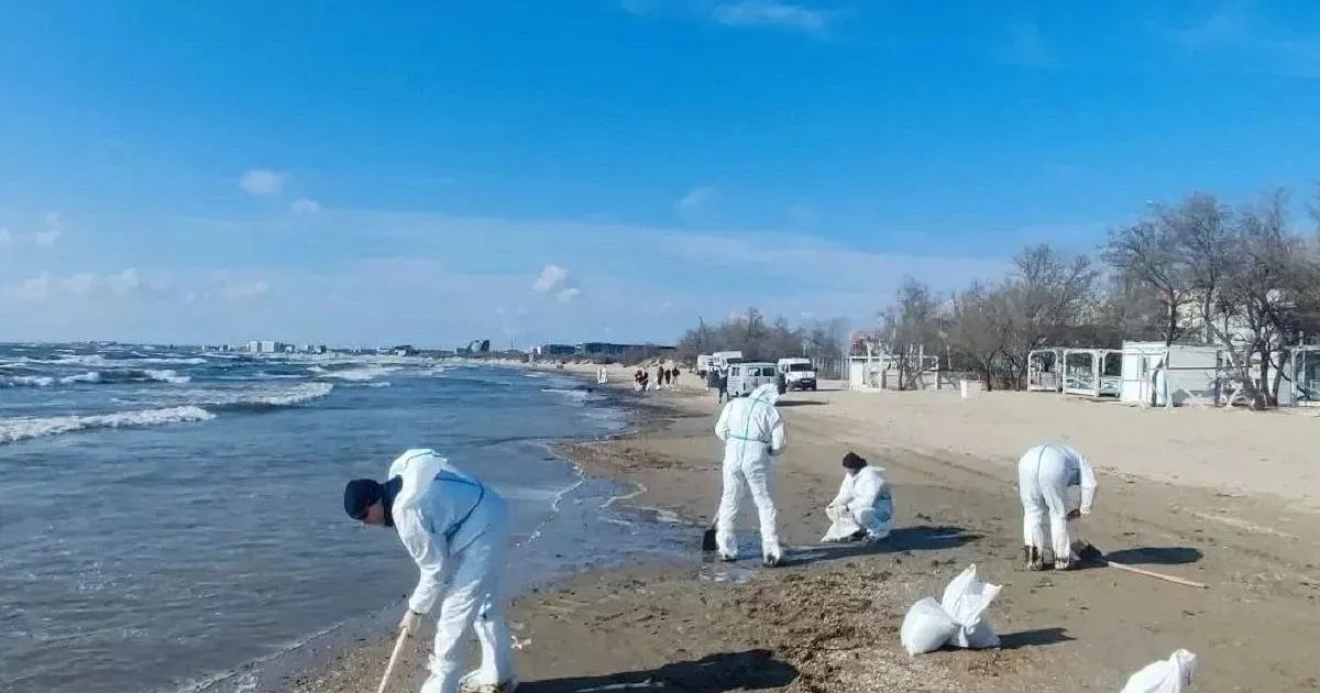 На курорте продолжаются работы по уборке нового выброса нефтепродуктов.