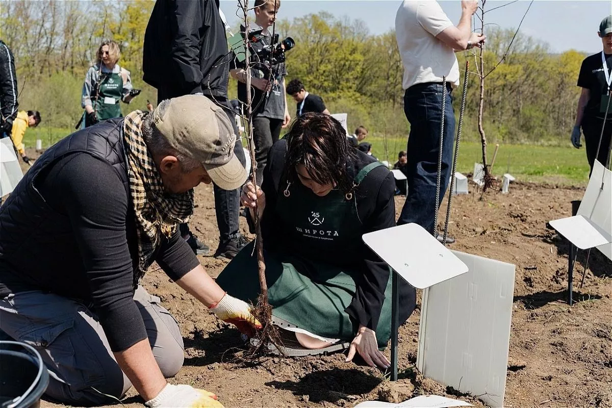 Будущие жители курортного поселка, партнеры и сотрудники ГК ТОЧНО вместе высадили именные лозы «саперави» и яблони «лигол». Через несколько лет каждый участник мероприятия получит подарок – бутылку вина и сидра из первого урожая.
