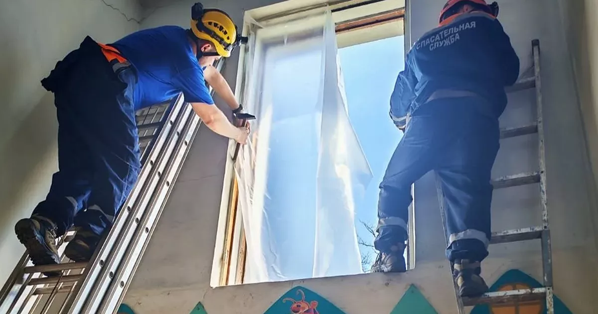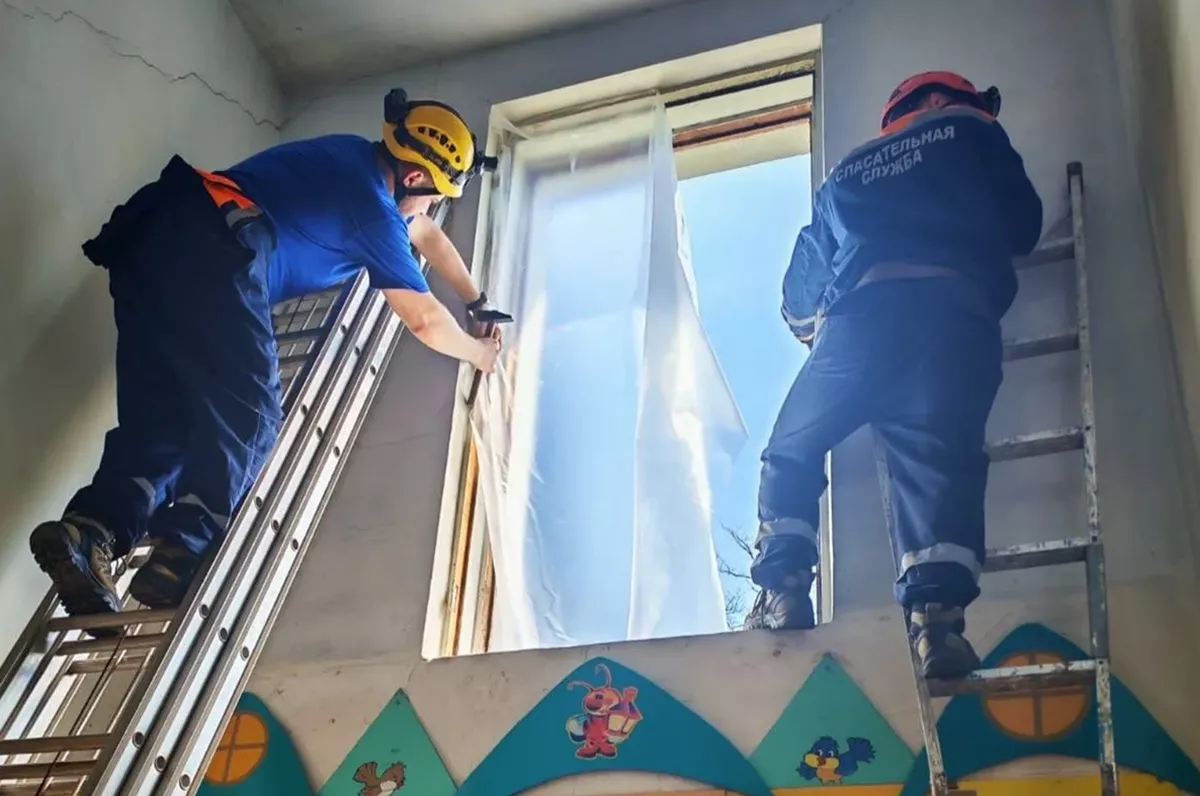 Работы по изоляции окон, поврежденных в зданиях Туапсе в результате беспилотной атаки, подходят к концу