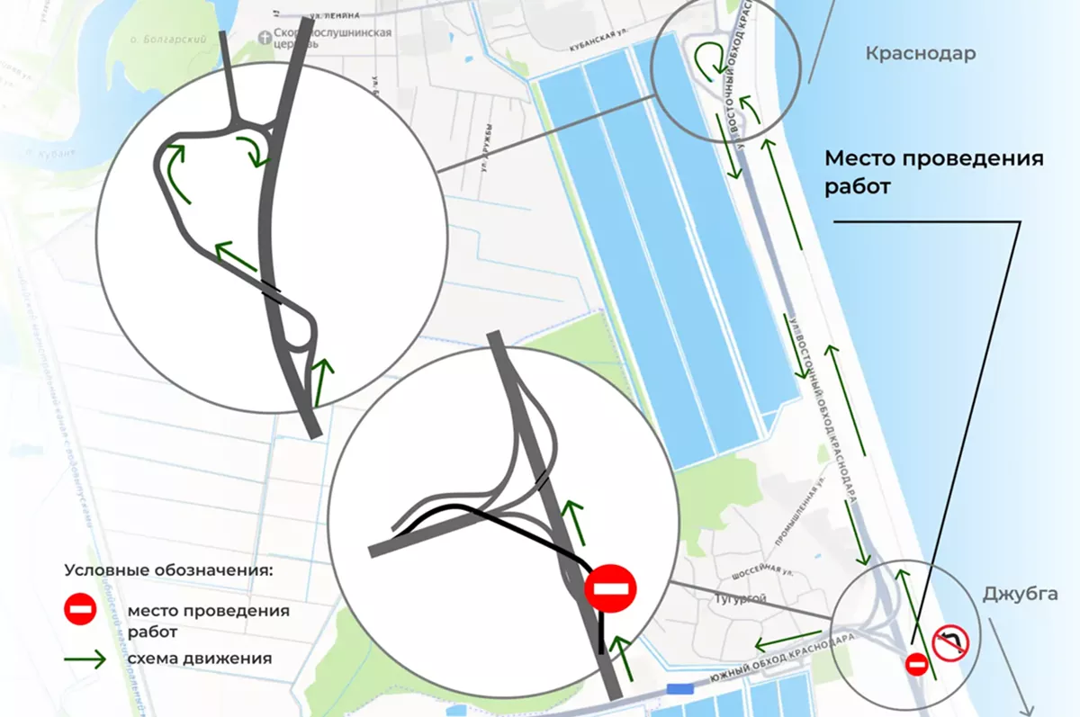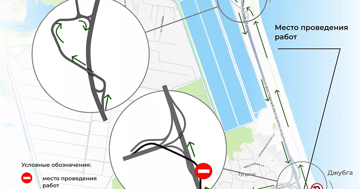 - С 24 по 30 апреля 2026 года в связи с проведением плановых дорожных работ на эстакаде в составе развязки у аула Тугургой будет закрыт съезд с трассы М-4 «Дон» на Южный обход Краснодара по направлению из Джубги, - говорится в сообщении. -Приносим извинения за временные неудобства и просим водителей планировать свои маршруты с учетом указанных обстоятельств.