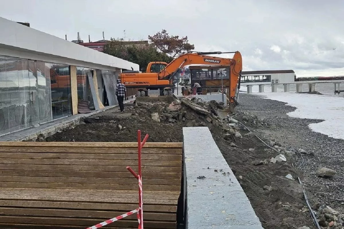 В Адлерском районе Сочи приступили к восстановлению морской набережной, частично разрушенной сезонными штормами.
