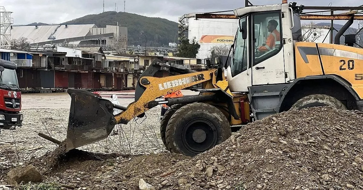 В Туапсе продолжаются работы по сбору нефтепродуктов, попавших в реку и побережье из-за масштабного пожара после атаки БПЛА 16 и 20 апреля.