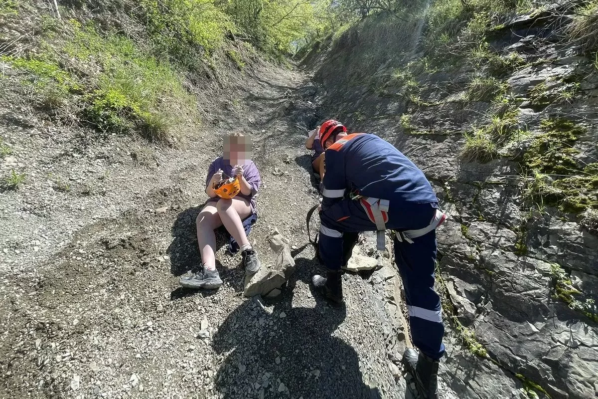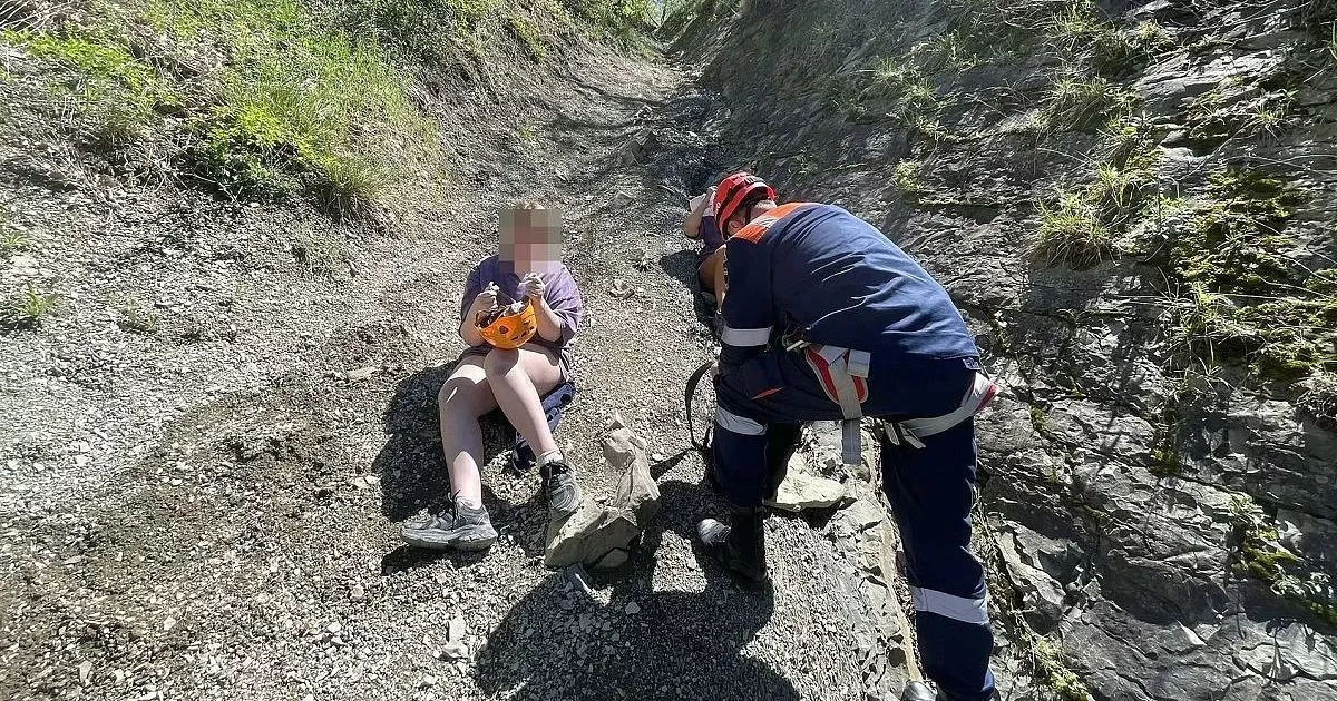 Женщина с дочерью остановились примерно на середине пути, так как продолжить подъем не хватало сил, а спуститься самостоятельно было опасно, камни под ногами крошились и осыпались. Женщина поняла, что рискует, и обратилась за помощью.