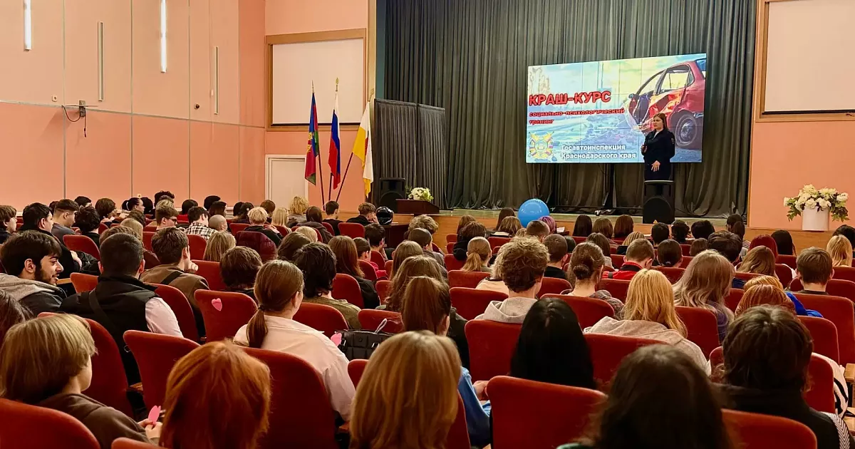 Сотрудники отдела пропаганды Управления Госавтоинспекции Краснодарского края провели социально‑психологический тренинг «Краш‑курс» для студентов Краснодарского гуманитарно‑технологического колледжа.