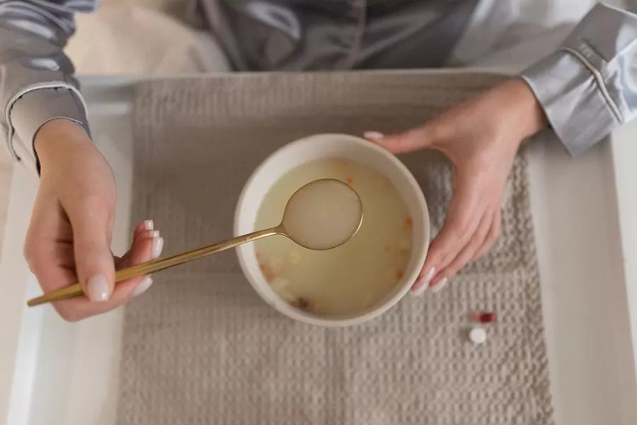 По словам эксперта, человеку, у которого простуда или ОРВИ, лучше увеличить долю пюреизированных продуктов, жидкости. Можно пить чай, морс, компоты и обычную теплую воду без газа. А питательные вещества и силы, необходимые для борьбы с инфекцией, следует черпать из нежирных мясных бульонов, приготовленной на пару рыбе, сваренной на воде овсянке и пр.