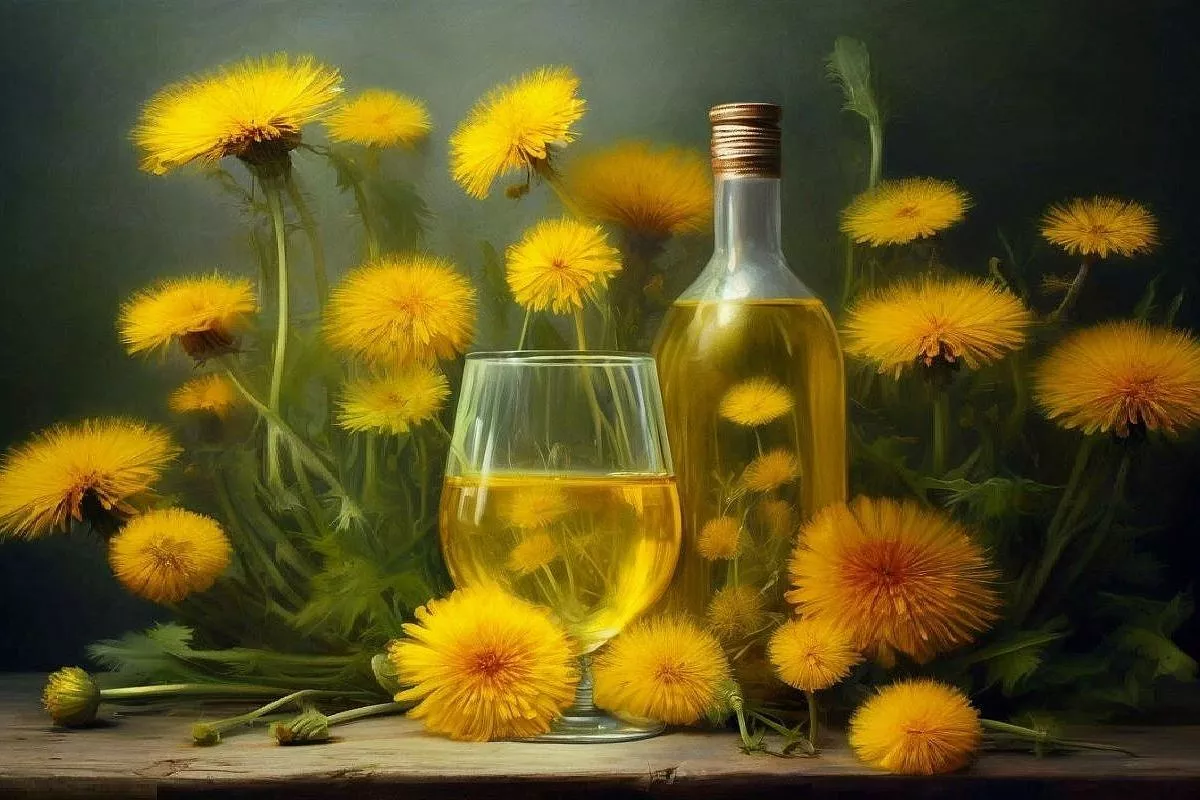 Берем 500 г лепестков одуванчика, отделенных от зеленого цветоложа, заливаем 5 л кипятка и даем настояться несколько суток. В настой добавляем цедру, снятую с 5 крупных апельсинов, высыпаем 1,5 кг сахара-песка, кипятим, а после остывания процеживаем. Затем высыпаем 11 г винных дрожжей, переливаем в бутылки и ждем, когда вино созреет. В содержимое гурманы советуют положить мелиссу, чабрец и змееголовник.