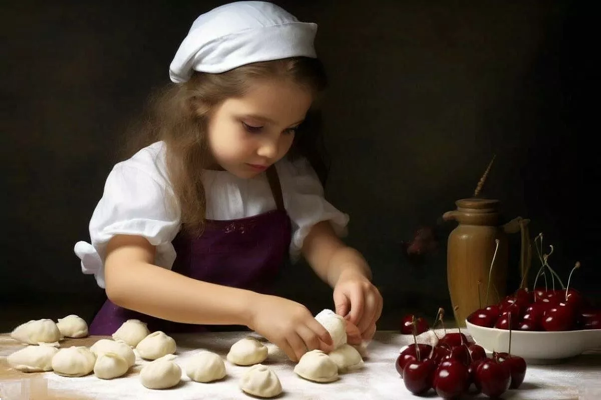 Дальше – все, как обычно с варениками. Делаем тонкие небольшие лепешки и заворачиваем в них несколько вишенок. Можно добавить к ним пол-ложки сахару. Защипываем края до классического вида вареника.