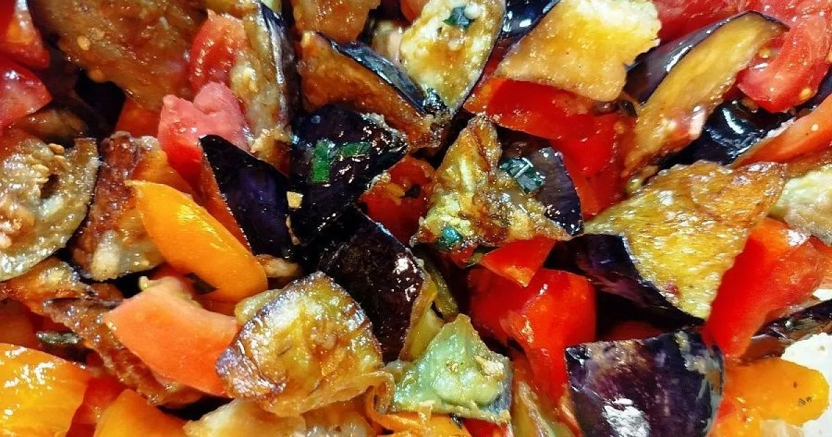 Известно много вариаций салата, основными ингредиентами которого являются хрустящие баклажаны и помидоры, но базой, пожалуй, можно считать салат лаззат.