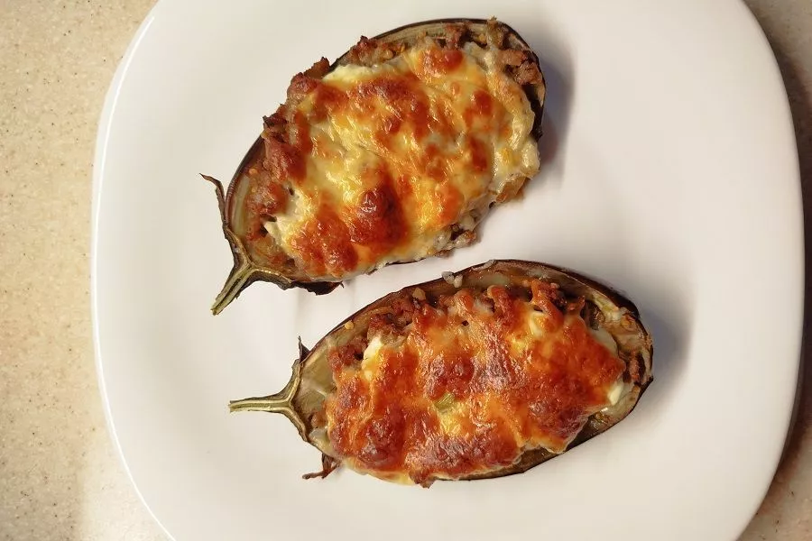 Лодочки из баклажанов положить на противень и наполнить их полученной смесью мяса и овощей. По каждой распределить по 1,5 чайной ложки сметаны. И сверху посыпать заранее натертым сыром. Поместить в разогретую до 190–200 градусов духовку, запекать 35–40 минут. Готовность вы поймете по образовавшейся румяной сырной корочке. Блюдо готово!