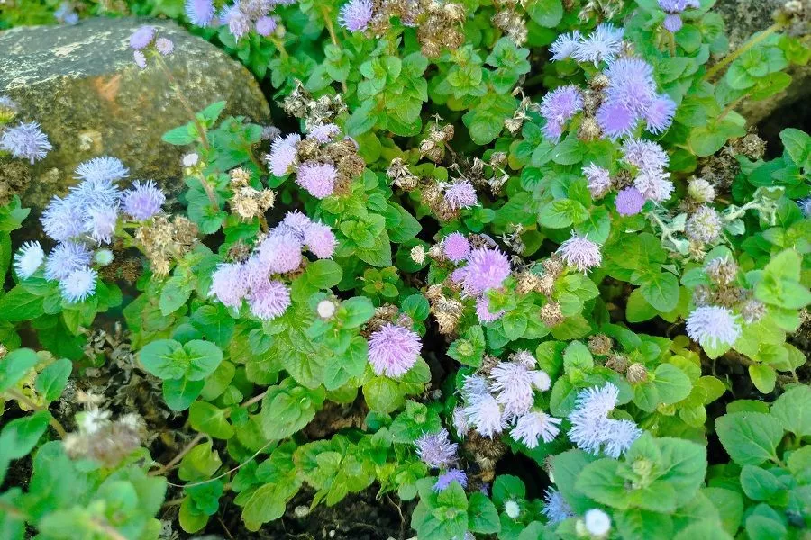 Агератум отличается тем, что хорошо ведет себя в срезке, то есть поставленный в вазу может радовать глаз очень долго. Неслучайно в народе его еще называют «долгоцветкой». Известно около 60 видов агератума. Самыми распространенными являются те, что с голубыми цветочками.