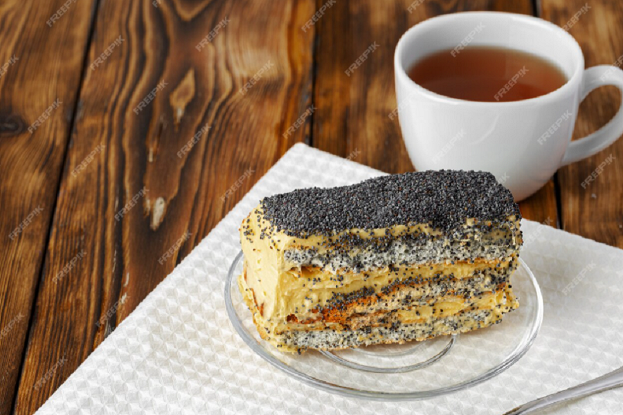 Тем временем надо сварить крем. Соединить в чашке сахар, кукурузный крахмал, добавить молоко, перемешать до однородной консистенции. На небольшом огне заварить смесь до загустения. В завершение всыпать ванильный сахар и перемешать. Дать остыть до комнатной температуры. Параллельно достать сливочное масло, чтобы дать ему время нагреться. Мягкое сливочное масло взбить до пышности, добавляя к нему постепенно по 1 столовой ложке заварной массы. И масло, и масса должны быть комнатной температуры. В получившийся пышный крем добавьте маковую начинку, купленную в магазине. Впрочем, ее несложно приготовить и самостоятельно. Еще раз взбить маковый крем.